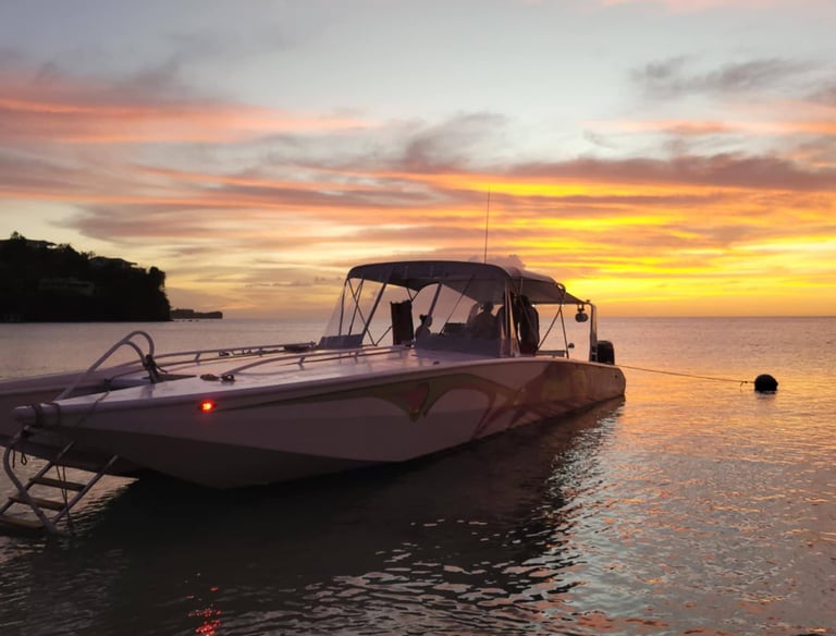Sail into the golden hour with stunning views of the Caribbean Sea as the sun sets behind Grenadaβs coastline. Enjoy good music, island drinks, tasty food, and a laid-back party atmosphere thatβs perfect for couples, groups, and first-time visitors.